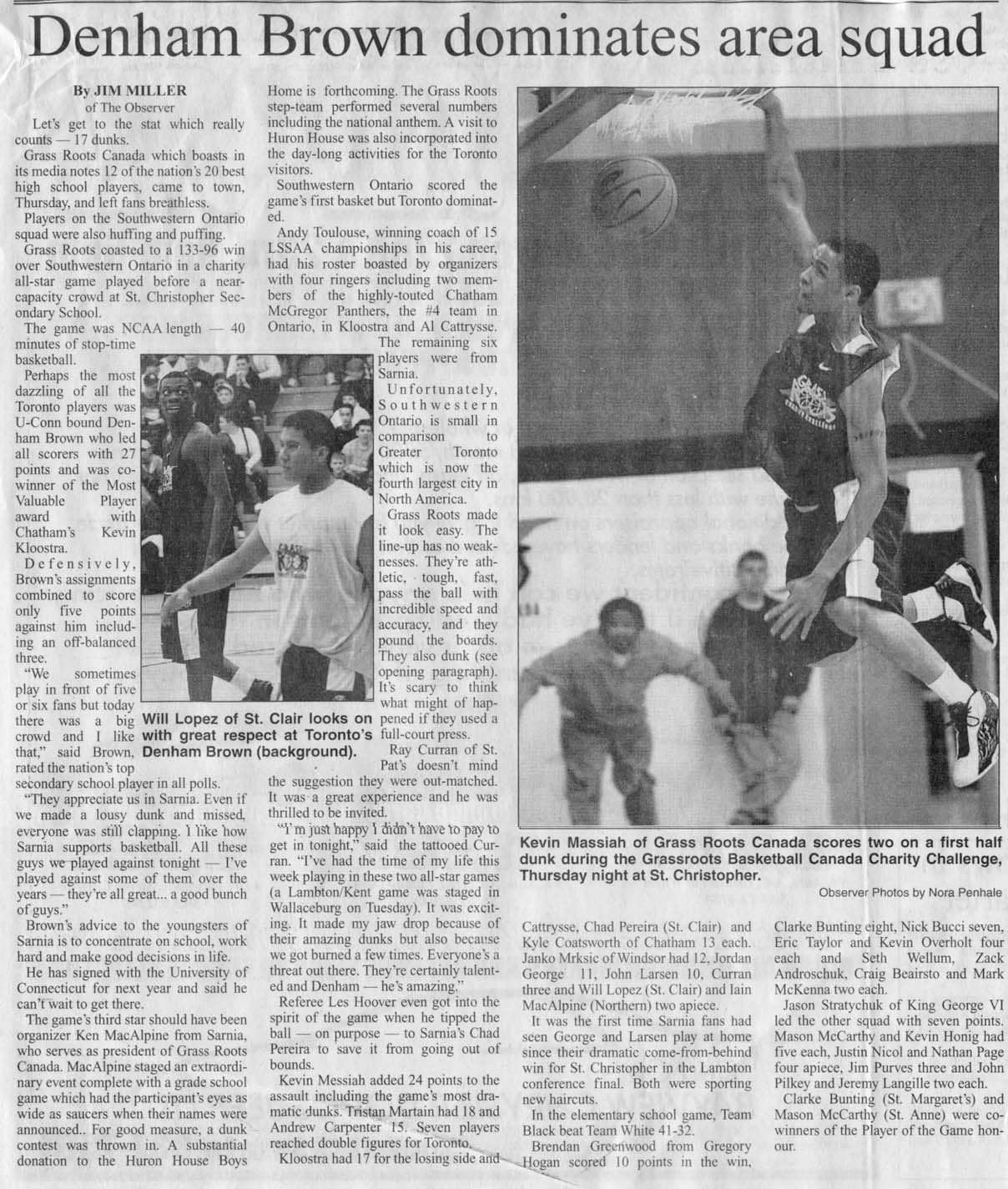 1999 – Grassroots Canada AAU: FR – Tristan Martin, Kern Carter, Marlon Bryam, Jermaine Anderson, Shane Morrison, BR – Ro Russell, Andrew Carpenter, Roderick Ramsey, Jemino Sobers, Oliver Prince, Denham Brown, Antwi Antuhene, Wayne Dawkins